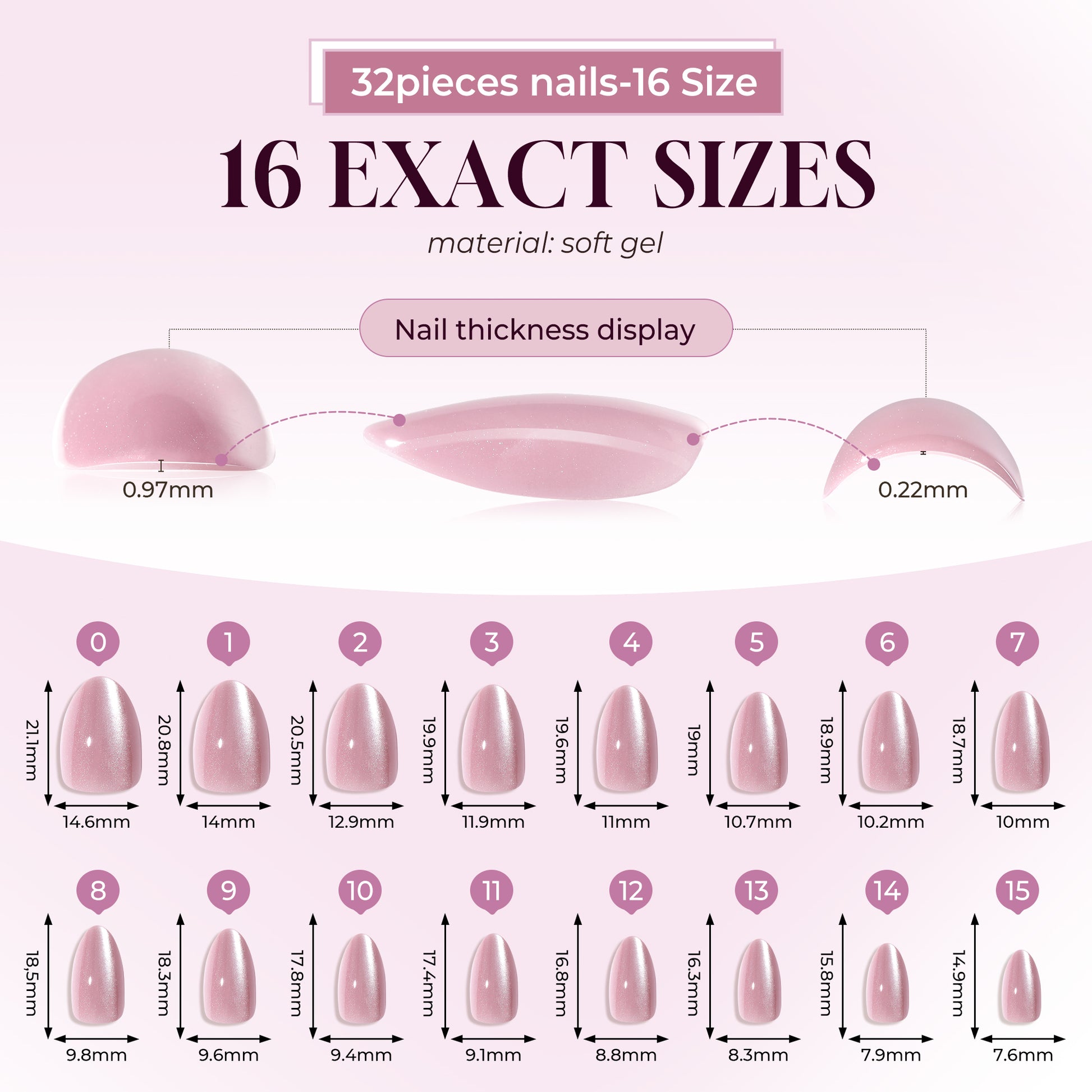 - Everything You Need for a Flawless Application: Find your perfect match from 16 custom sizes. Each set comes with a wood cuticle stick, prep pad, double-sided file, nail glue, adhesive tabs, and a convenient storage box.