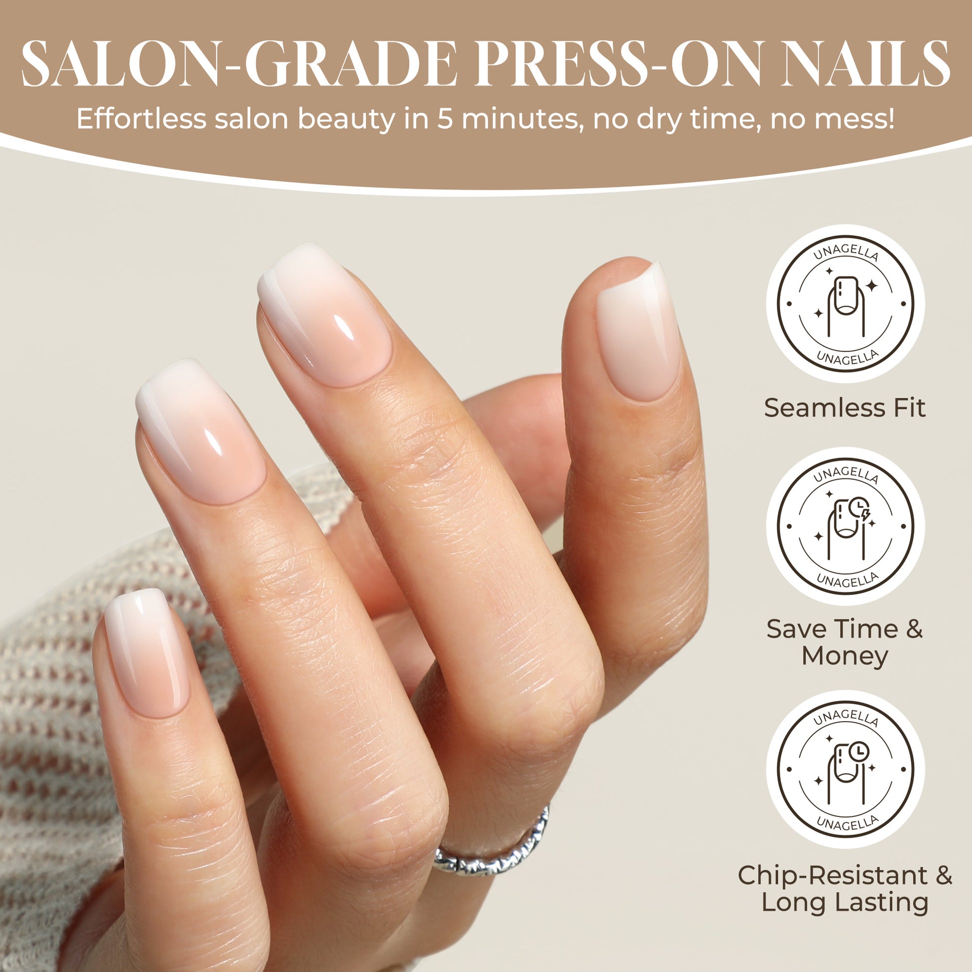 - Experience a Natural Feel: Crafted from a flexible soft gel material, these press-on nails feel incredibly natural. They apply with zero pressure on your nail beds and feature a gentle flex with a seamless cuticle line for a perfect, undetectable fit.