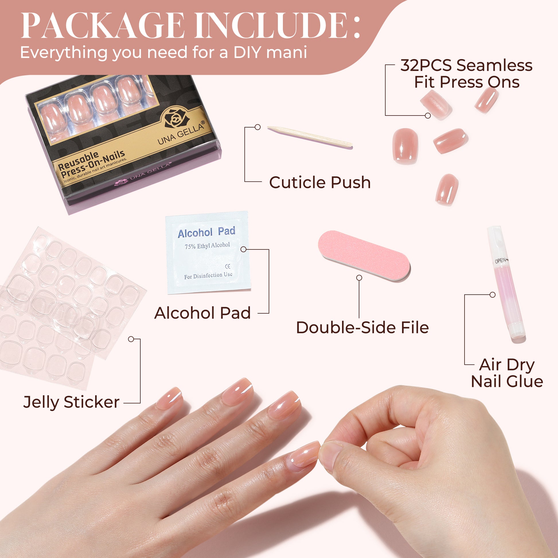 - Live Without Limits: With our durable builder gel finish, UNA GELLA acrylic press on nails are built to last. Type, garden, tackle chores, or play with your pet—they’ll stay securely in place. They are designed to hold their perfect fit, feeling just as intact as the day you applied them.