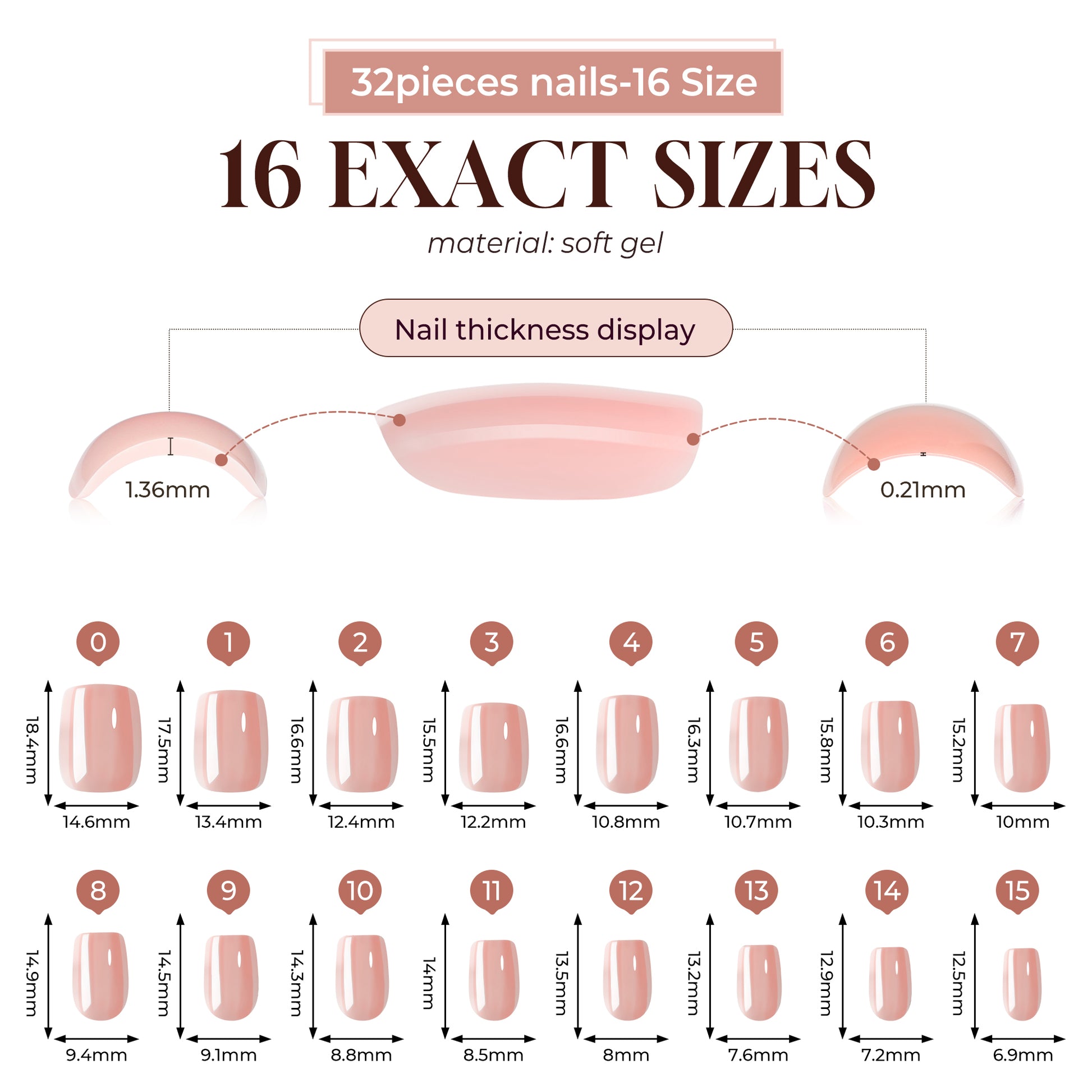 - Everything You Need for a Flawless Application: Find your perfect match from 16 custom sizes. Each set comes with a wood cuticle stick, prep pad, double-sided file, nail glue, adhesive tabs, and a convenient storage box.
