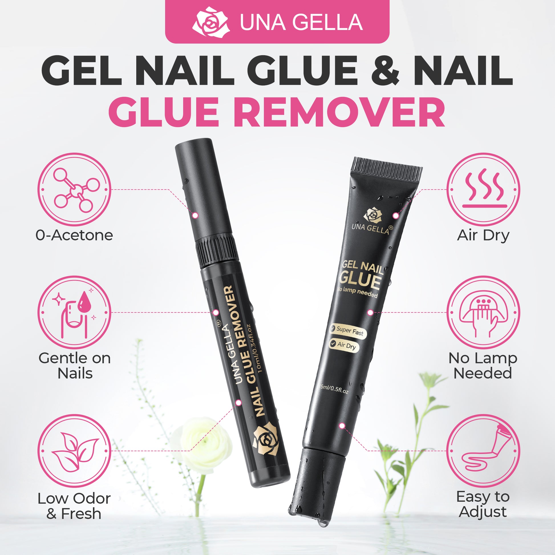 - [COMPLETE DIY MANICURE KIT] This 2-in-1 tool-free kit includes a 15g semi-solid nail glue and a 10ml nail glue remover. It is the ideal solution for both beginners and experienced DIY nail enthusiasts, streamlining your manicure routine into a seamless application and removal experience.